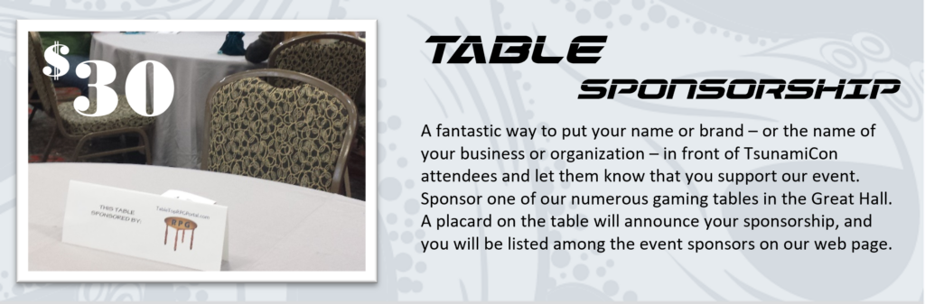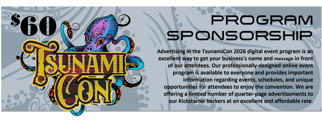 If you are interested in an exhibitor space at TsunamiCon 2026, we encourage you to visit our Vendors page. If you are interested in sponsorship sponsorship opportunities for our event, we encourage you to fill out the application here. Once you’re approved you can purchase any available sponsorship at your convenience.